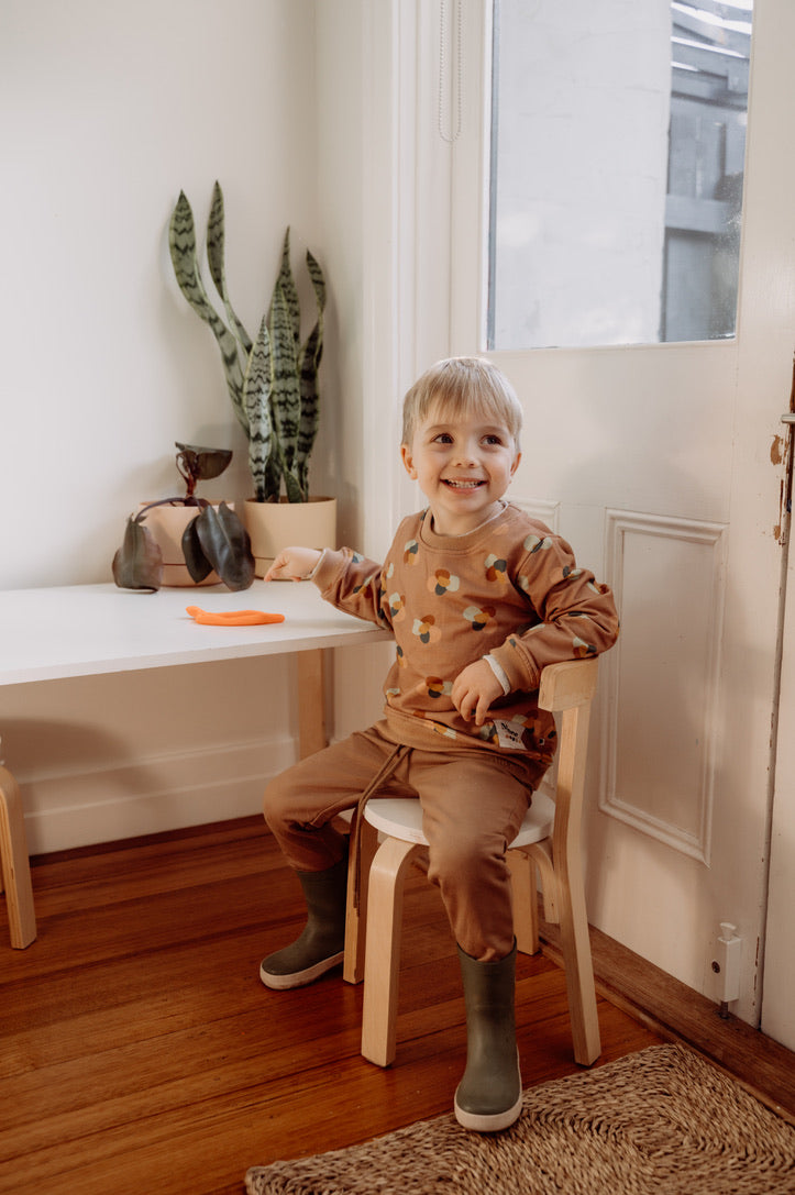 Our garments are made using organic cotton and other natural fibres and printed using non-toxic dyes. The fibres we use are durable and great quality while being super soft on your little one's skin.